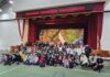 ▲一位阿公介紹百年榕樹和大隱國小的歷史淵源。(圖∕大隱非營利幼兒園)