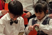 迎新活動一開始,新生們走過三道門拿到三樣市長爸爸準備的開學禮,象徵著孩子們正式邁入學習之路,也踏入了人生另一個的階段。在家長陪同下,孩子們首先通過第一道「乖巧門」,魏嘉賢發送乖乖一包,經過第二道「聰慧門」時,園長李妃伶發送一盒蠟筆,最到一道門「健康門」,由老師們發送一包口罩,希望孩子們都能健康成長。