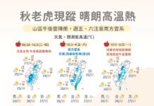 預期下週三將受一波東北季風增強南下,天氣型態又有所轉變了,迎風面的北部及東半部地區,天氣型態與這陣子的秋老虎會有較大的反差,轉為陰雨的天氣,氣溫也會有所下降,而中南部地區則不受影響,氣溫與降雨變化不大。