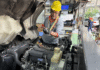 ▲慈濟基金會災防組長劉秋伶(左1)為眾人介紹新開發的多功能油壓床使用 右1為三重志業園區領導師姐羅美珠。(圖/新北市社會局提供)