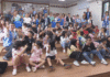 ▲送給孩子們的驚喜大禮(由左至右為一之軒總經理廖明堅、城市福音學員、頂新和德文教基金會創辦人魏應充、城市福音學員)。(圖/頂新和德文教基金會提供)