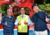黃敏惠表示,這是她第一次參與大甲媽遶境進香,今年特別與年輕人相約,踏上學習之旅,因為台灣人的熱情與媽祖慈悲的精神就在這裡,不僅代表台灣,更是凝聚台灣的力量,更祈禱國泰民安、天降甘霖,讓中台灣早日解除已久的旱象。(本報導空拍畫面∕嘉義縣政府提供;合照∕嘉義市政府提供)