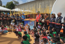 因應時下法規,要符合CNS12642檢測規範的遊具,在遊具周邊須要有183公分以上的空地,因此用2分石做為鋪面,除了降低豔陽曝曬的熱度,也順勢加大了遊具的體積。