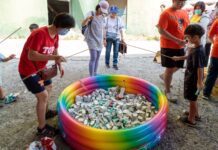 ▲花蓮市農友大排長龍,有序地兌換優質農產加工品。(圖/范振和攝)
