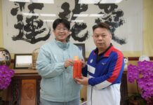 ▲花蓮縣政府教育處長翁書敏(右二)等人,陪同選手黃賢文拜會縣長徐榛蔚。(圖/縣政府提供)