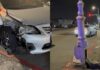 ▲國軍事故再+1!桃園「勇虎戰車」擦撞轎車。(圖/記者王俊勝 翻攝)