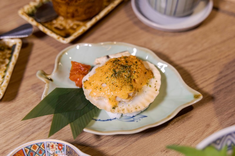 ▲烤物|季節烤物。這道明太子焗烤扇貝等變化菜色,海味十足且火候掌握得宜,鹹香濃郁令人印象深刻。