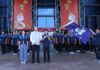▲花蓮城市代表翁書敏(中)從本屆主辦城市手中接下象徵主辦權的 ICG 旗幟。