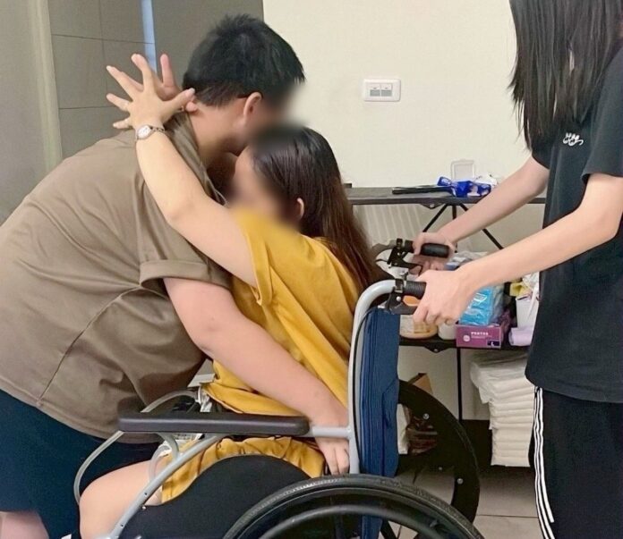 ▲小宜協助媽媽側身熟練使用輔具。(圖/展望會提供,下同)