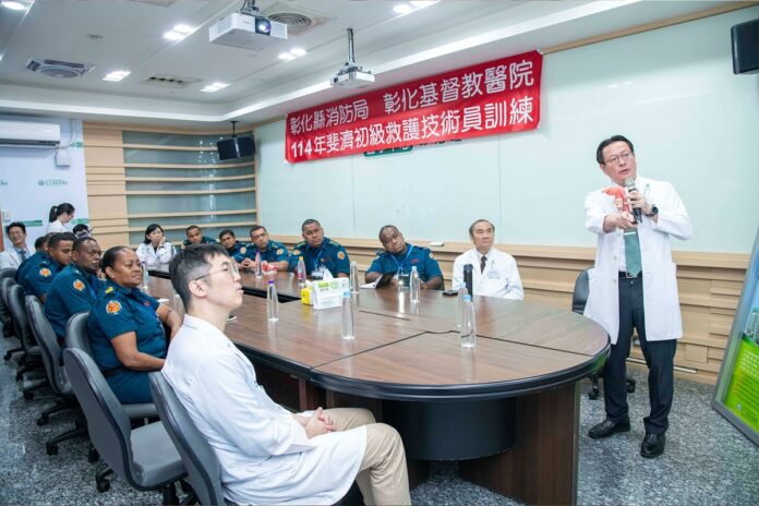 為協助南太平洋島國斐濟建立初級急救能力,彰基醫學中心(以下簡稱彰基)在外交部的協助指引下,並結合消防署與彰化縣消防局的合作安排,於4月下旬迎接10位來自斐濟的首批緊急救護員來台受訓,由彰化縣消防局規劃,彰基急診醫療團隊配合計畫,一同與彰化縣消防局進行為期10天、全英語授課的專業課程。