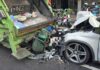 桃園驚險一幕!客運失控衝出圍欄 連環撞倒30輛U bike.(圖/翻攝)