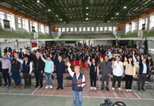 落實推動安心校園,光復中學校長李詩慶在集會期間,針對兒少性剝削的防制提醒全校學生「不拍、不傳、不留,一求助」的口訣,強調自我保護的重要。