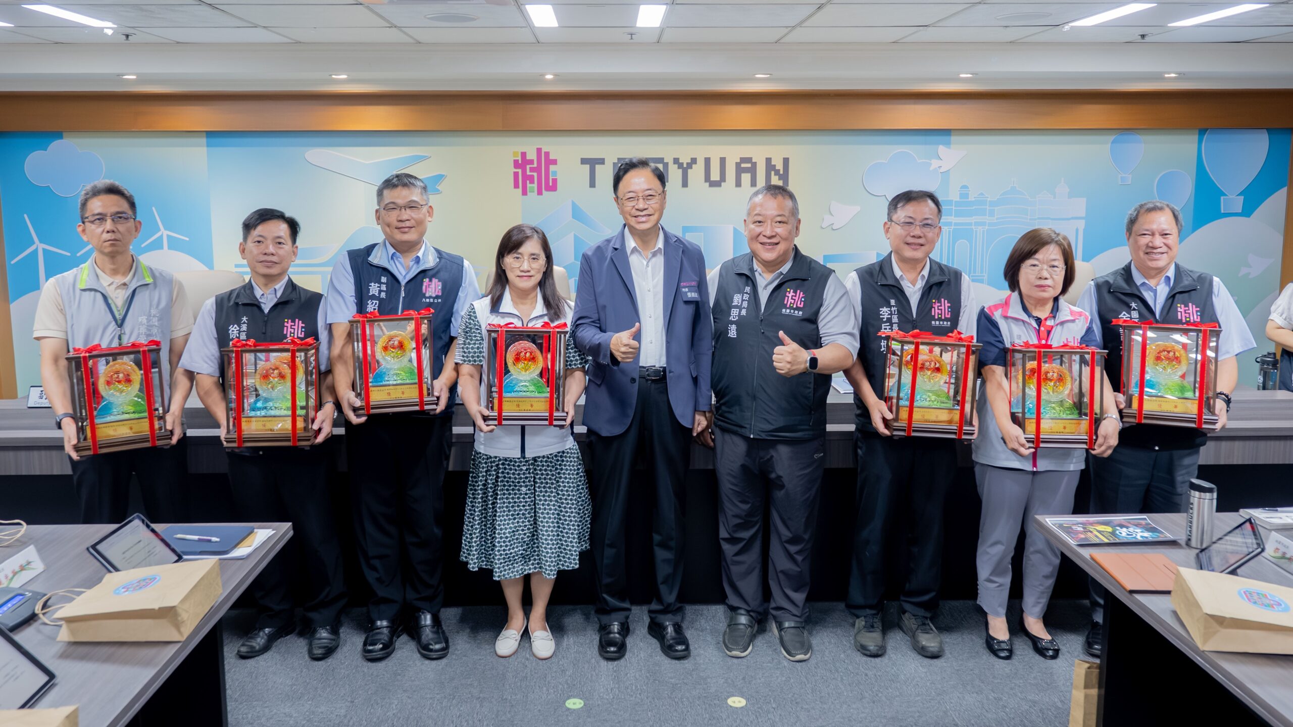 桃園市長張善政(10)日上午主持市政會議,頒發「桃園市114年公立殯葬設施查核評鑑優等」獎牌予績優公所及市府殯葬管理所時表示,殯葬服務工作繁雜,感謝各區公所與殯葬管理所投入心力與熱情,提升各項設施服務品質,打造更溫馨、現代化的友善殯葬服務環境。