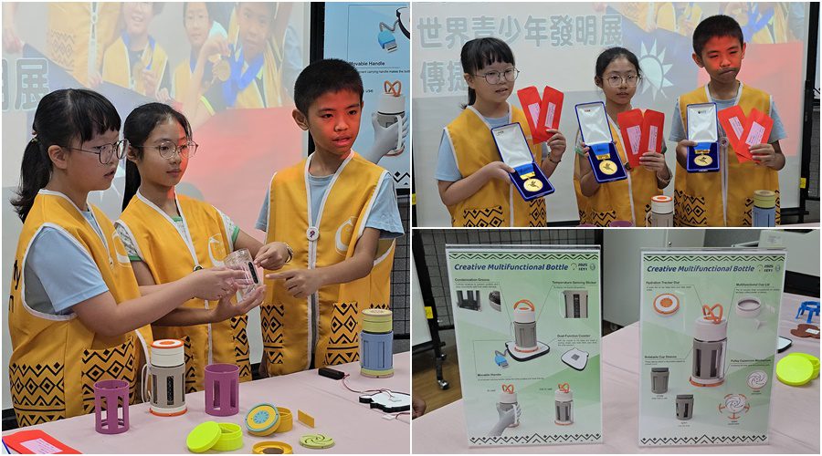 8月在日本大阪盛大舉行的2025世界青少年發明展,匯集15個國家青少年菁英,在七大項目爭取18面金牌;台灣代表隊表現亮眼,總共贏得8面金牌。其中宜蘭國小的潘昊青、陳言馨與林芷涵3位同學,在陳榮政老師的指導下,以「多功能創意水杯」作品勇奪金牌。