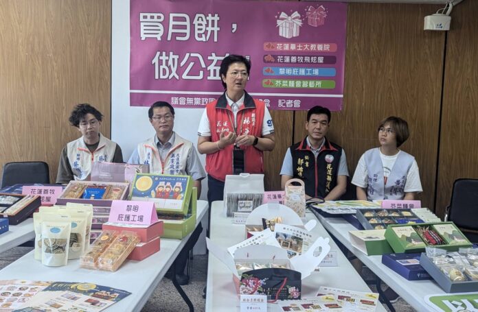 ▲花蓮縣議會無黨政團邀請4家慈善社福機構,共同召開「買月餅、做公益」記者會。(圖/楊華美服務處提供,下同)
