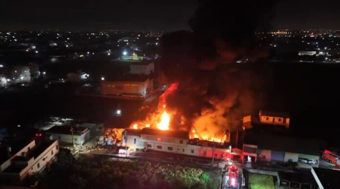(彰化秀水一間塑膠回收廠火警,火勢猛烈,所幸員工及時逃出。圖/ 民眾提供)