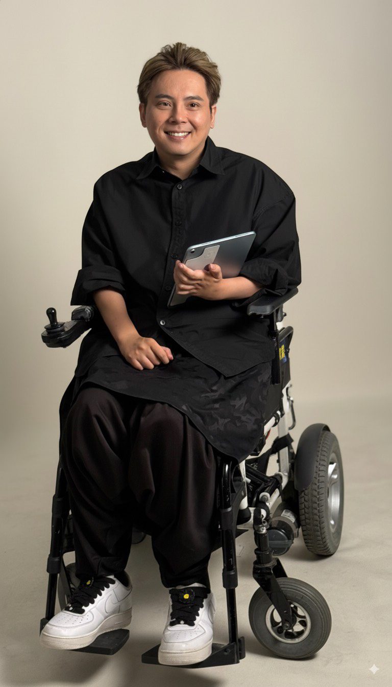 學員周佳青分享,他因車禍導致脊髓損傷,須長期依賴輪椅,曾經一度灰心喪志,但他不向命運低頭,自學習AI技術後,從圖片生成到影片剪輯,逐步成為一名具備專業的AI技術人員。無論是製作輔具海報、簡報教材,還是擔任生命教育講師,希望讓技術成為他人的助力。