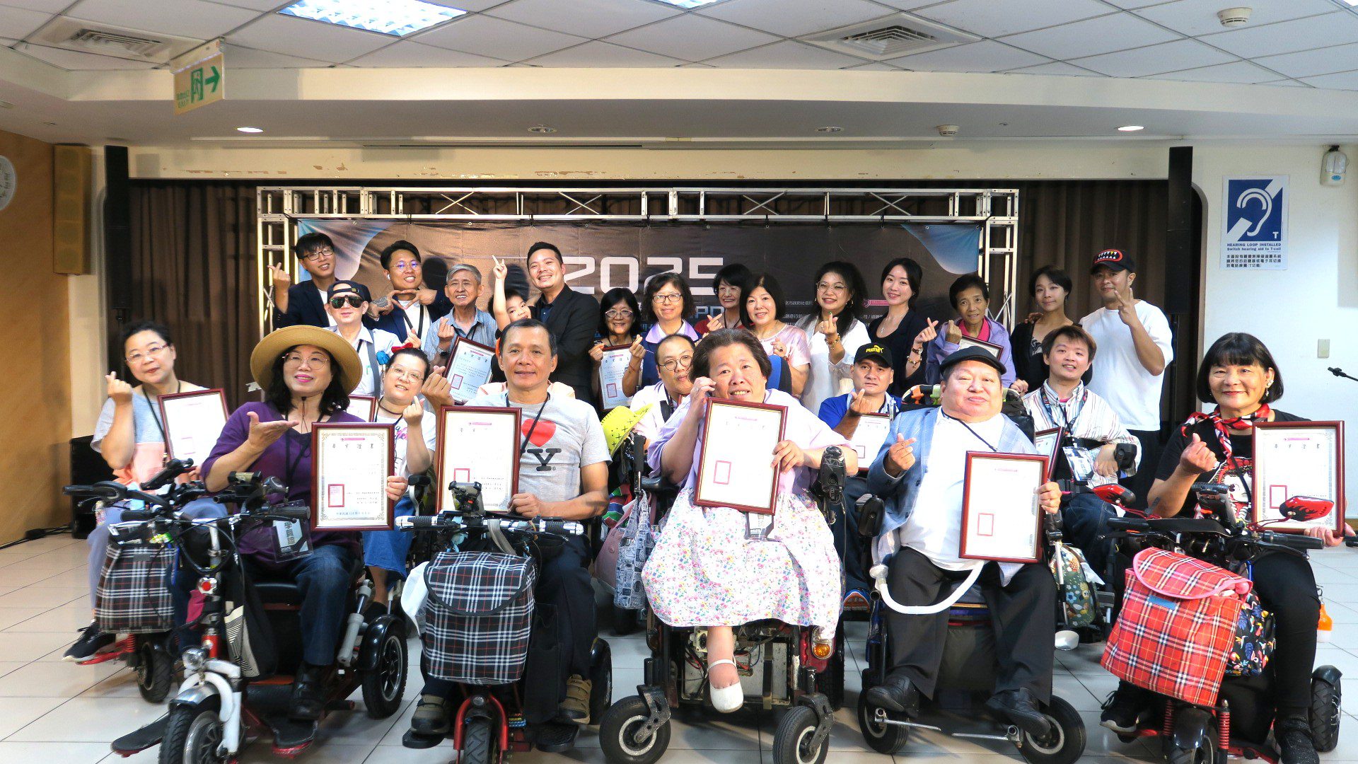▲由社團法人中華身心障礙者職業技藝協會培訓的2025身心障礙者CRPD智能短影音製作,舉行成果發表會並合影。(圖/新北市社會局 提供)