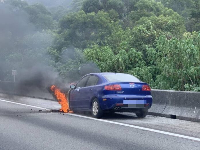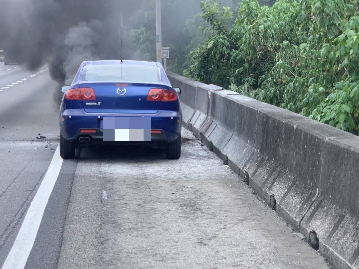 國道三義路段自小客車火燃車。翻攝畫面
