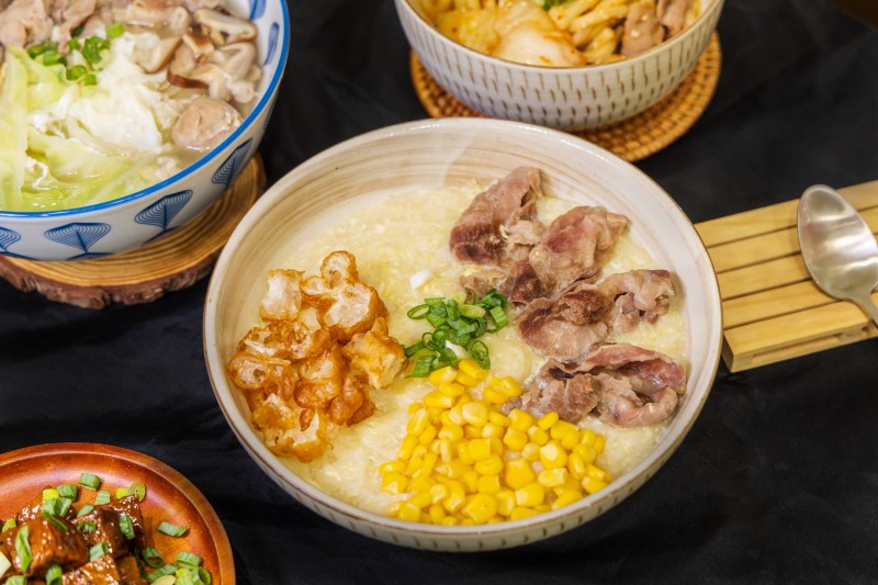 綿滑白粥融合牛肉的香嫩與蛋花的細膩,入口柔和卻不失層次。玉米粒在其中添上清甜驚喜,搭配酥脆油條,讓口感更添變化。沒有過度複雜的調味,卻以最單純的美味,成為任何時刻都能依靠的一碗暖胃陪伴。