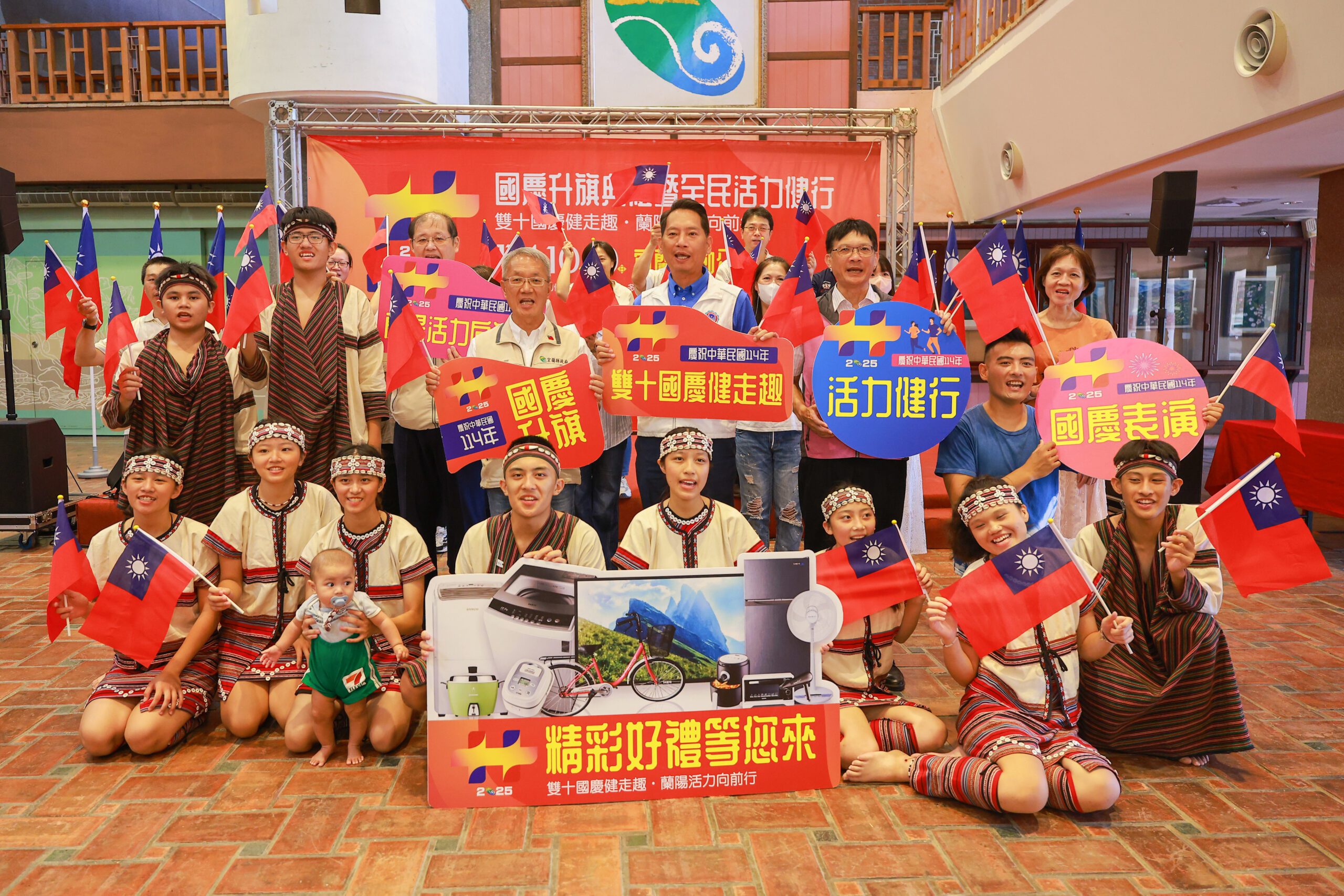 宜蘭縣「慶祝中華民國114年國慶升旗典禮暨全民活力健行活動」,10月10日上午6時30分,在宜蘭運動公園田徑場舉行,除升旗典禮外,將安排勒巴彥文化藝術團表演活力舞蹈,讓活動更加生動活潑。
