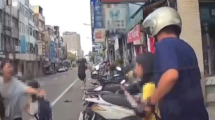 邱姓男子持刀抓住一名女童行兇,一旁安親班女教師隨即奮不顧身將女童拉開。翻攝畫面