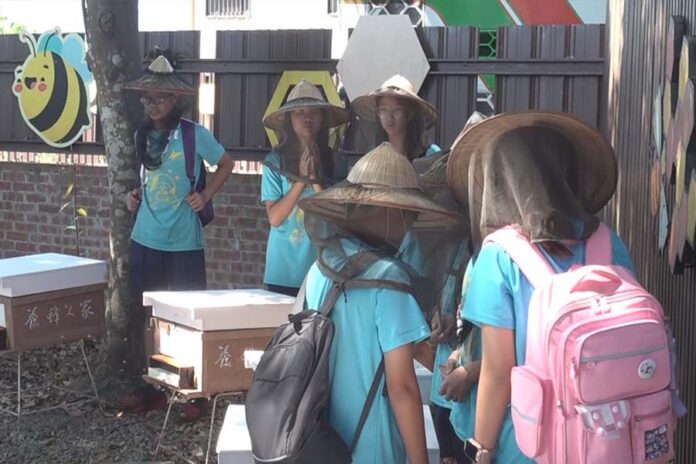 學生們在互動導覽員的解說下,輕輕的擔起蜂箱,幫小蜜蜂搬到舒適的地方。蜜蜂可以說是大自然生態的指標,宜蘭市農會辦起食農教育,讓小朋友們認識食材的可貴。