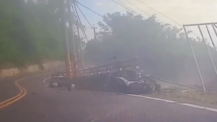 事故的後方行車紀錄器畫面也曝光了,畫面中可見楊姓騎士穩定騎乘於山路,豈料後方黑色轎車高速衝入彎道、疑似逆向超車,下一秒便擦撞機車、連人帶車翻落山谷而機車騎士則被撞飛到路旁,驚悚瞬間全被拍下。