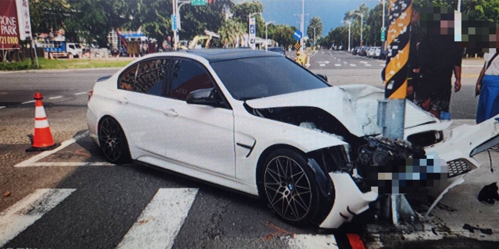 屏東市區驚傳車禍!今(6)日下午3時許,屏東市復興南路與建國路口發生一起交通事故,一名21歲楊姓男子駕駛BMW轎車,高速行經路口時、疑為閃左轉廂型車,失控直接撞上號誌桿,強大衝擊力,還波及正等紅燈的一輛機車,現場瞬間傳出巨響,一名停紅燈的婦人被撞輕傷,從曝光的影像及目擊者看到,BMW駕駛肇事時的時速破百,疑為肇事原因,也嚇壞不少用路人。