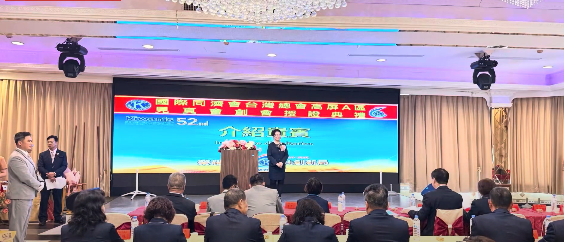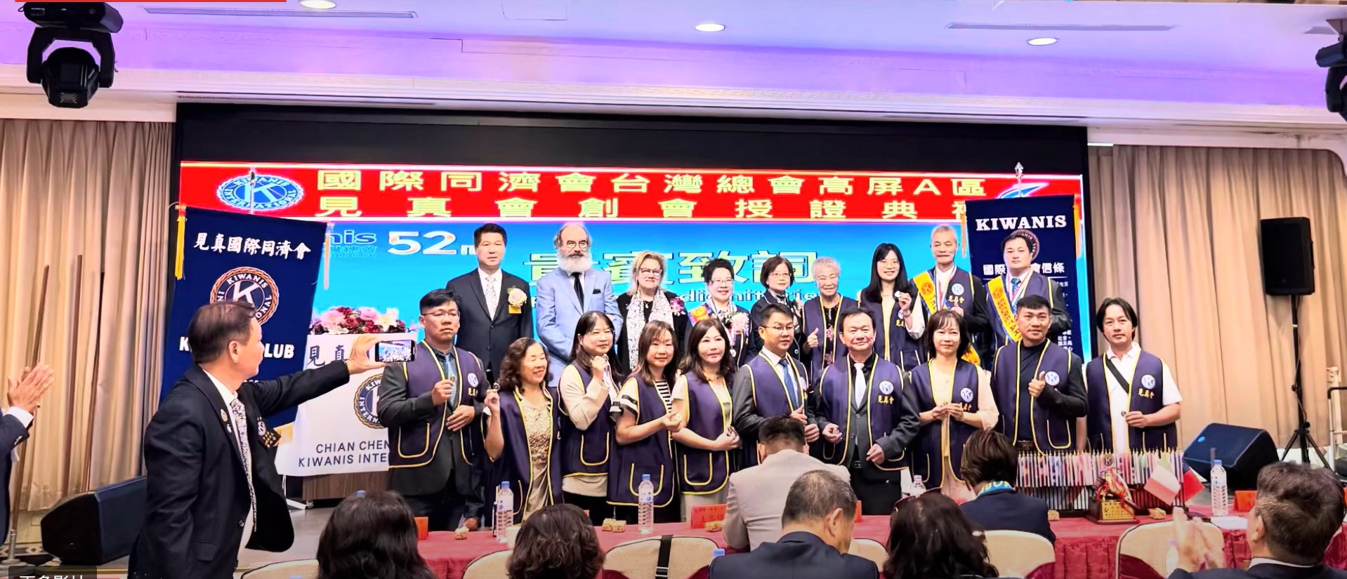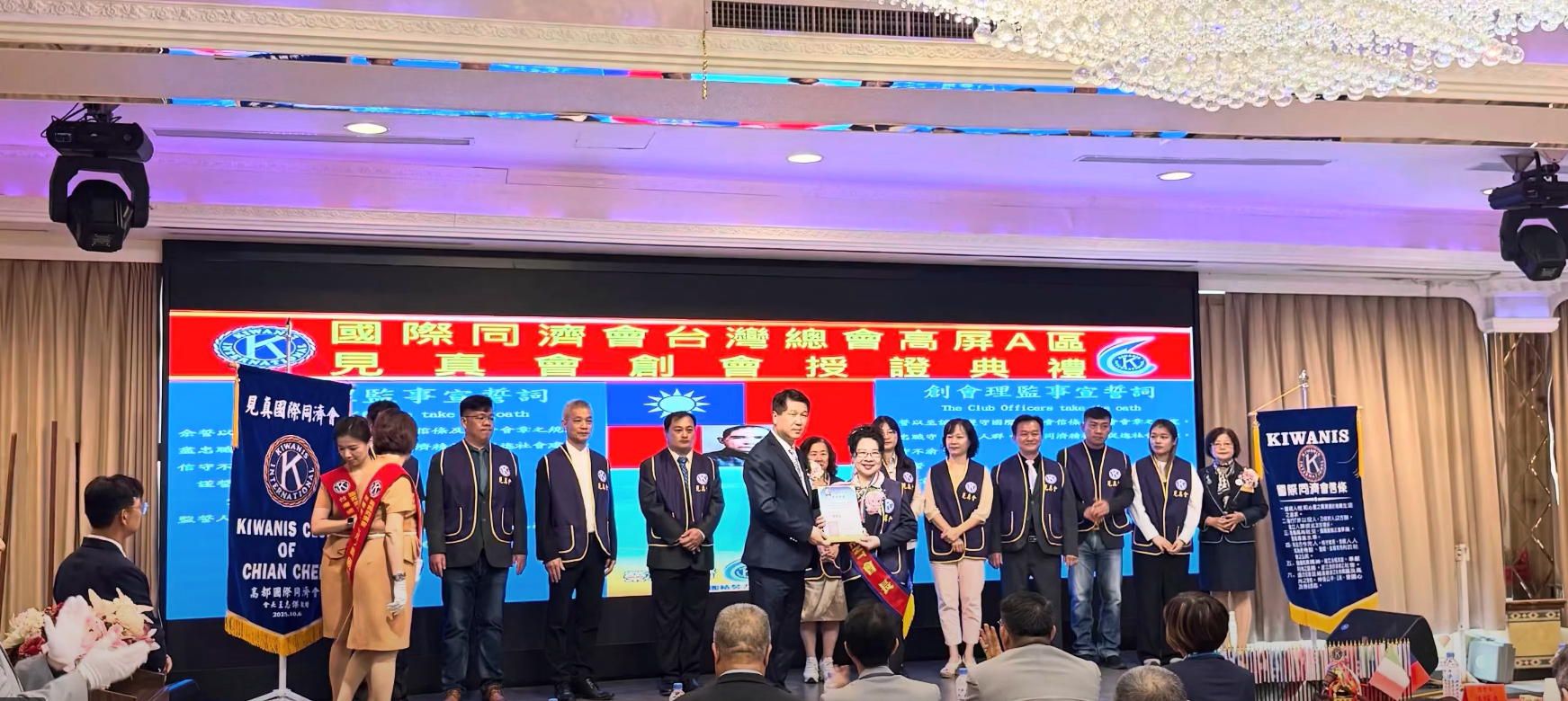 【記者范家豪/鳳山報導】 國際同濟會台灣總會第52屆高屏A區見真同濟會,於10月6日上午假高雄市鳳山區鳳大餐廳舉辦創會授證典禮,創會長曾玉貞率理監事宣誓就職。典禮由創會輔導人李宏章、高都同濟會會長王志傑等人見證,高市新聞聯盟協會總會理事長張永漢亦率團到場祝賀,場面隆重。