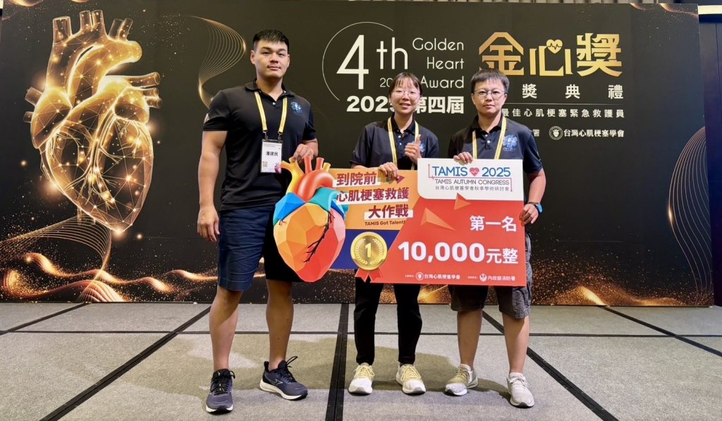 圖說:榮獲台灣心肌梗塞學會「到防前心肌梗塞救護大作戰」全國第1名(右起彰化分隊陳羽雙、和美分隊陳韋妮、彰化東區分隊潘建民)