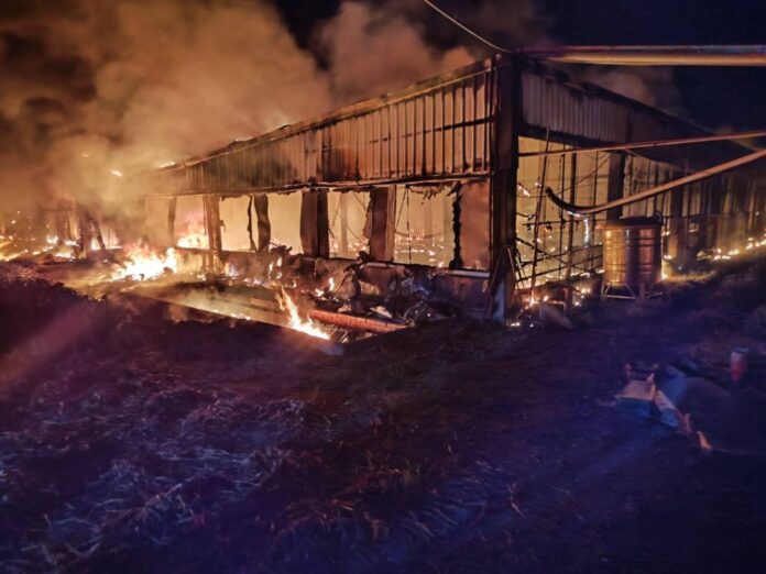 雲林縣四湖鄉養鵝場大火幾乎付之一炬 。翻攝畫面