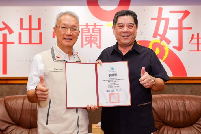 宜蘭縣體育會理事長蔡岡志,榮獲中華民國縣市體育會聯合總會辦理「114年國民體育日全國基層體育有功團體及個人表揚大會」的「傑出貢獻獎」,7日由宜蘭縣代理縣長林茂盛接見表揚。