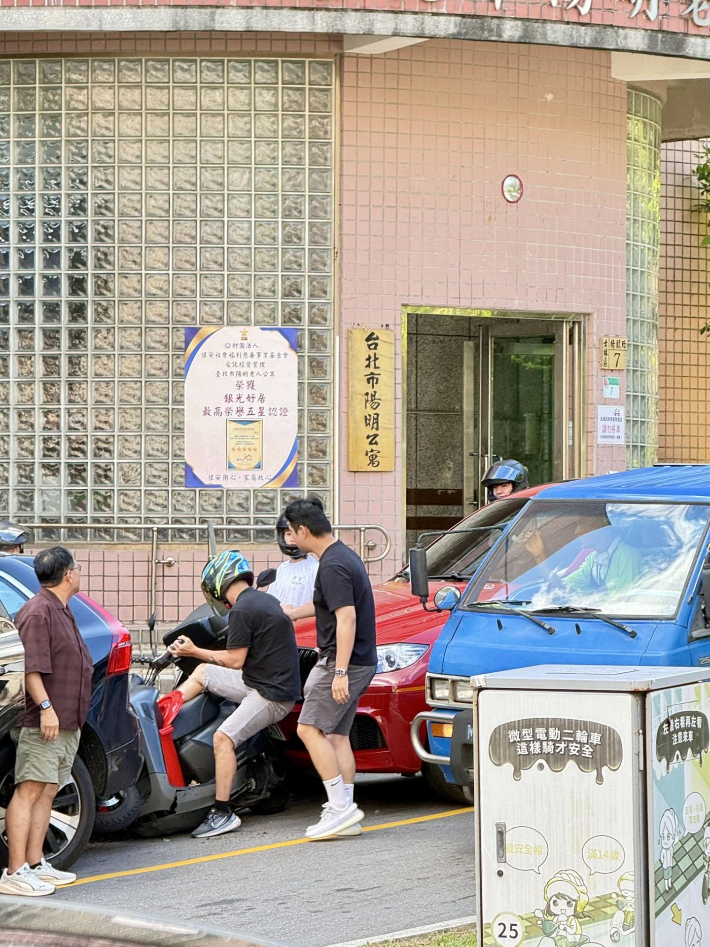 士林驚見「夾心機車」!紅BMW、黑VOLVO前後夾 網笑:任賢齊《對摺》真實上演。(圖/翻攝 重機車友 ❘ 各區路況天氣、資訊分享中心 臉書)