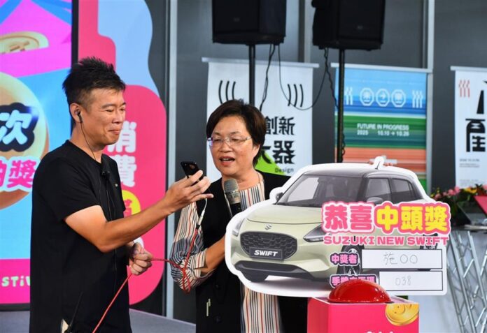 ▲「2025彰化GO購」消費抽獎活動持續進行,今(9)日於縣府中庭舉辦第1次抽獎直播記者會,公開抽出 593位幸運得主,其中最大獎 SUZUKI NEW SWIFT汽車幸運得主也正式揭曉。(圖/記者蕭麗鳳攝)