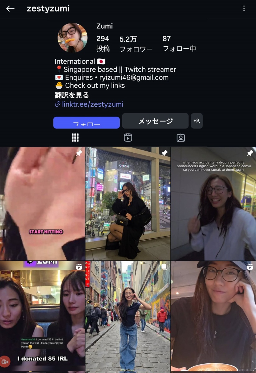 坐在副駕駛座的是在日本出生、來自新加坡的女性「Zumi」,她會說日文,常替外國實況主當地陪。這輛MR2是由她透過 Only JDM 足立店借的,不過駕駛卻是沒有國際駕照的 Giulia。事發後BMW車主出於好心替她聯絡警方與租車公司時,她卻以「聽不懂」為由拒絕配合,還說出:「我沒必要再跟你們說什麼。」