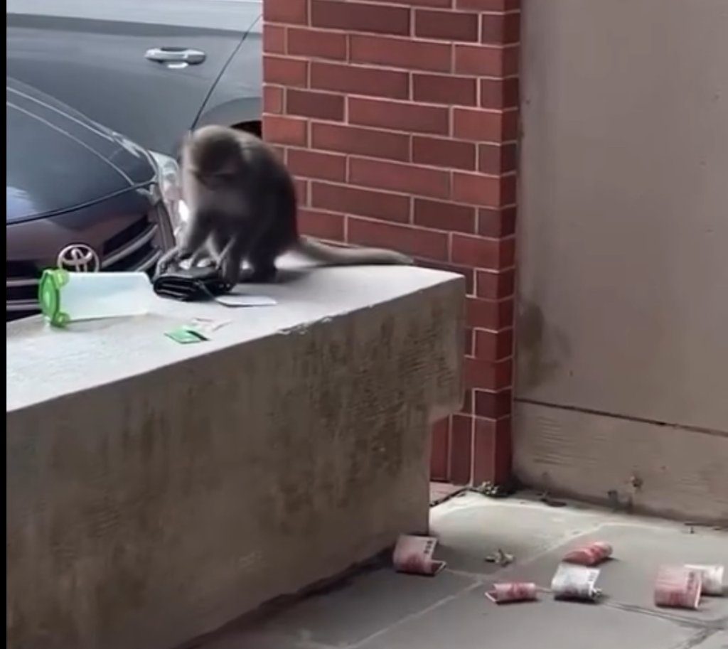 有民眾在網路 @threads發文說,自己的錢包遭到台灣獼猴行搶,還 po 出一段影像。畫面看到台灣獼猴直接翻開了民眾的錢包、鈔票也全部都飛到地上,最後民眾狼狽搶回了自己的錢跟水壺。