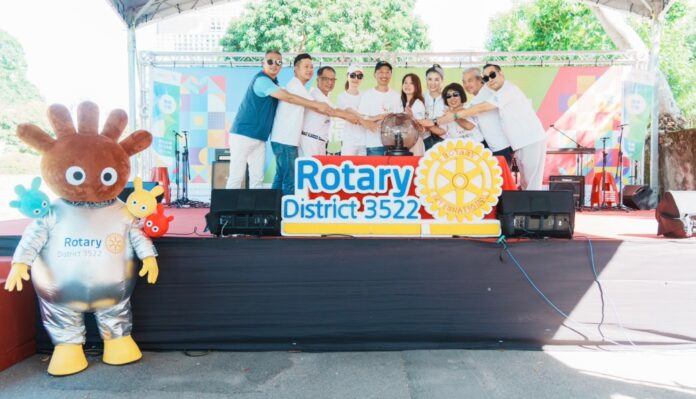 ▲幸福園遊會啟動儀式在總監DG Capital,總籌主委Melody,執行長Sandra及地區長官共同加持下,圓滿成功。(左五)扶輪3522地區總監 林政邦DG Capital、(右五)相信幸福博覽會總籌主委 PP Melody、(右四)幸福園遊會執行長PP Sandra。(圖/國際扶輪3522地區提供)