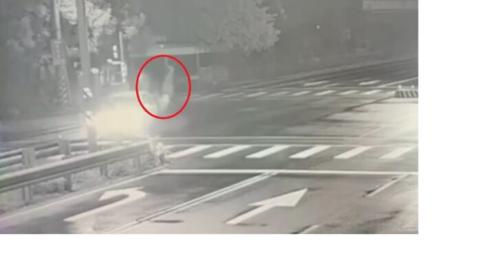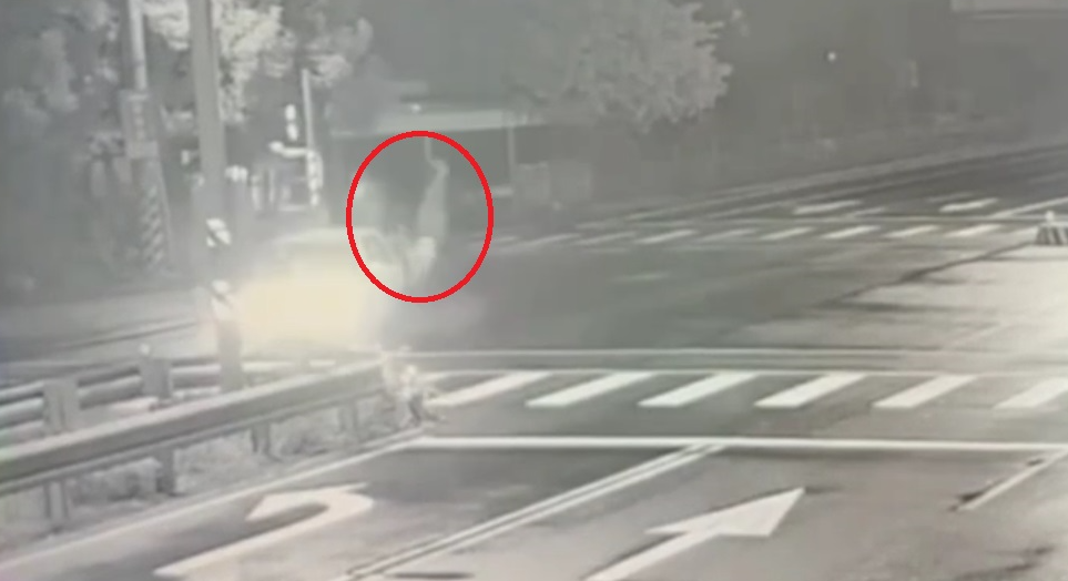 酒駕機車騎士(紅圈處)被自小客車撞飛。