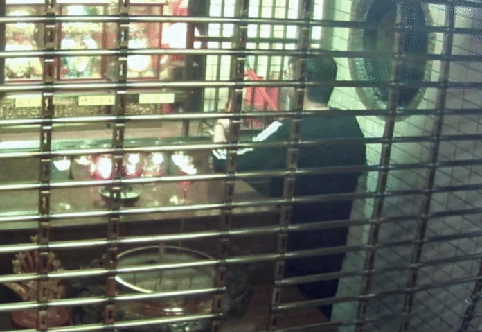 男子持鐵剪前斷鐵條竊取神像上的金牌。翻攝畫面