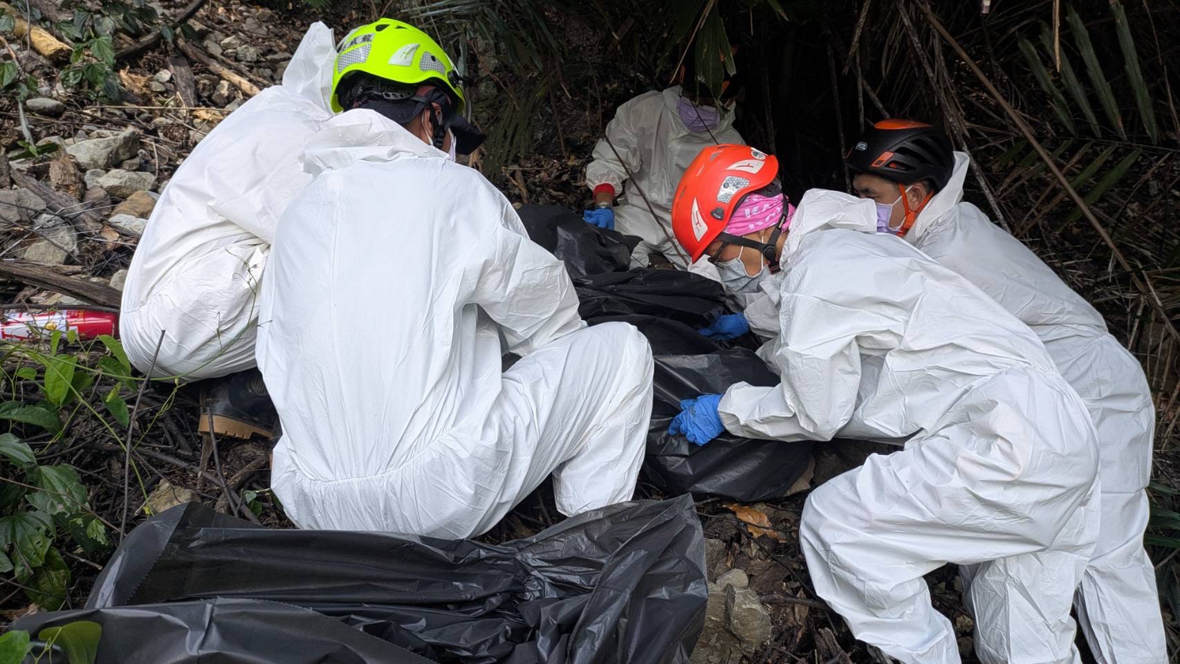 消防隊員尋獲失蹤47天的黃姓男子遺體。翻攝畫面
