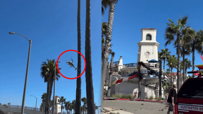 美國南加州杭亭頓海灘(Huntington Beach)11日發生一起駭人墜機意外,一架直升機原本在海岸上空飛行,沒想到突然失控「原地瘋狂旋轉」,接著急速墜落,直接撞進一排棕櫚樹與太平洋海岸公路(Pacific Coast Highway)旁的樓梯之間,現場民眾全程目睹,驚呼聲四起,畫面震撼。
