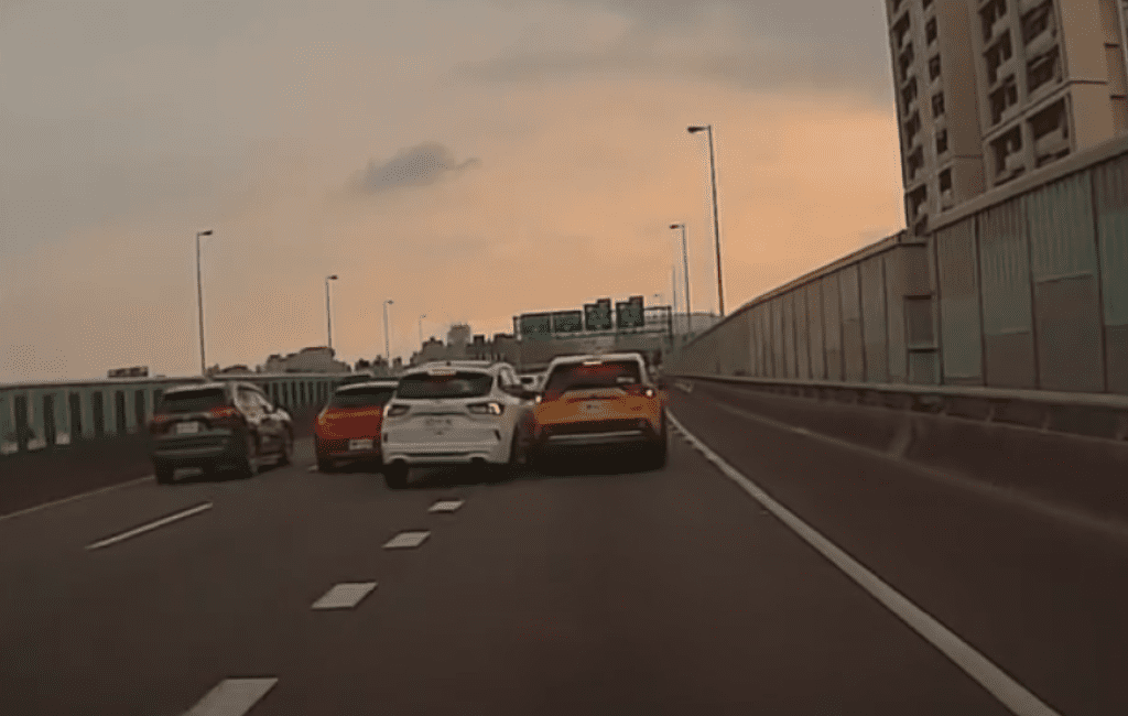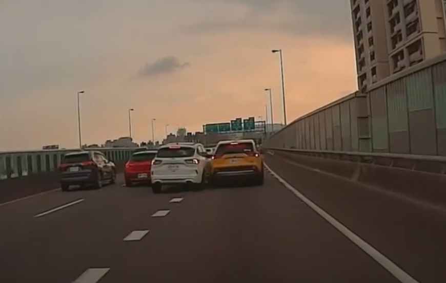 白色目小客車不當變換車道,擦撞右側計程車及前方自小客車。翻攝畫面
