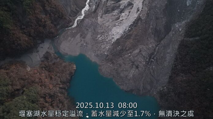 花蓮縣馬太鞍溪堰塞湖溢流潰決,各界關注。經無人機觀測顯示,10月1日至今(13)日,水位無明顯變化,再度潰決機率低,林業保育署花蓮分署強調,如有異常情形時,會立即依程序通報應變。