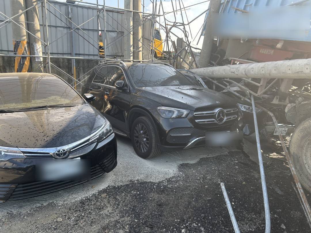 賓士車被倒塌物壓中。翻攝畫面