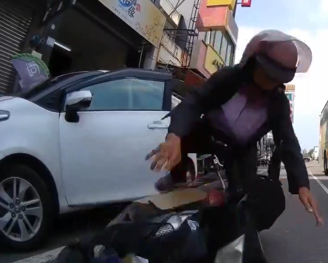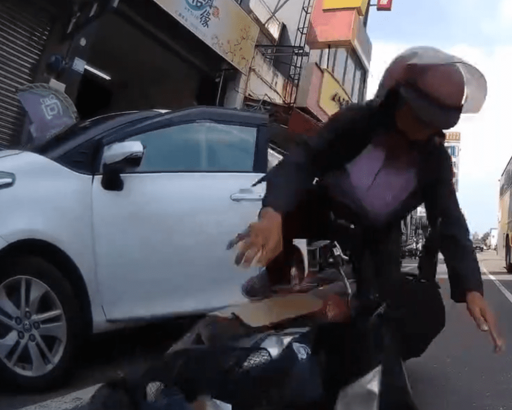 屏東自小客車駕駛開車門擊落機車騎士。翻攝畫面