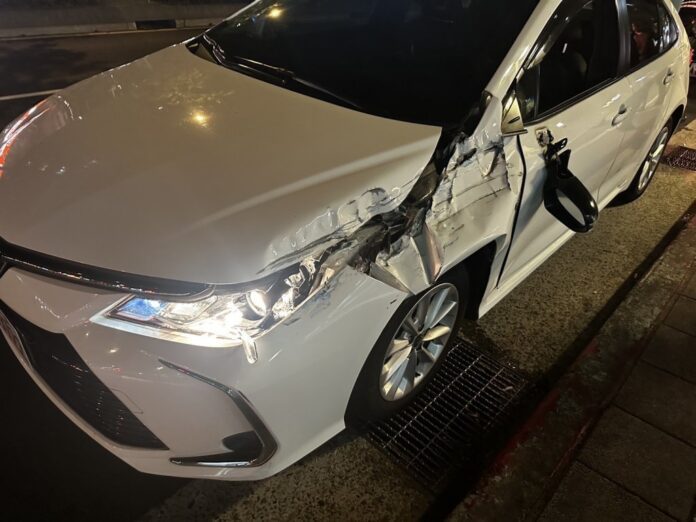 64歲陳姓男子駕駛多元計程車,自稱因天色昏暗加上車體A柱阻擋視線,不慎追撞前方1輛準備左轉而暫停禮讓對向直行車輛的自小貨車。