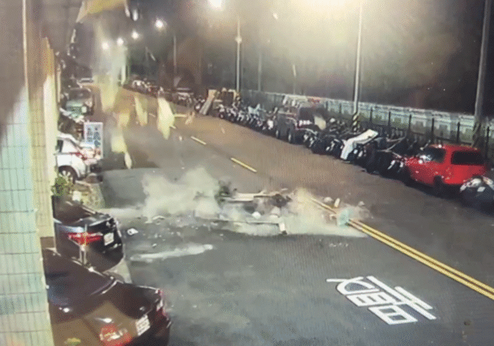 台中太平社區大樓住戶陽台半夜突然崩落砸中路面嚇嚇住戶。翻攝畫面