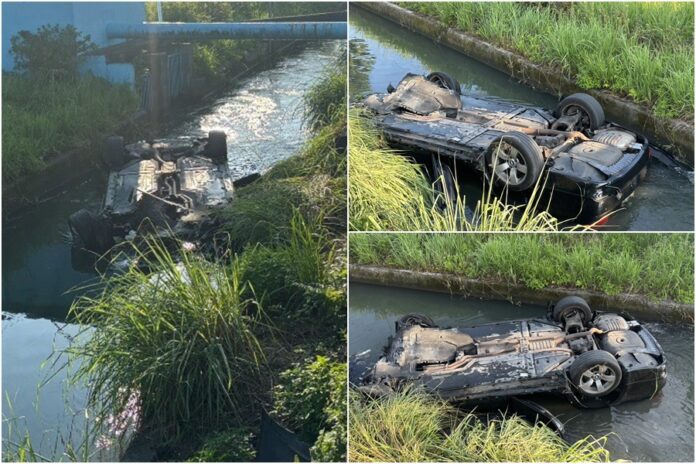 宜蘭市七張路10月14日上午6點多,發生一起交通事故!疑因自小客車駕駛不慎自撞護欄,連人帶車翻覆路旁灌溉溝渠,當場撞得四輪朝天,警消獲報立即趕到現場,將駕駛送醫救治,所幸並無大礙,已經返家休息。宜蘭分局員警對駕駛實施吐氣酒測,並無酒精反應,詳細肇事原因仍待後續調查釐清。
