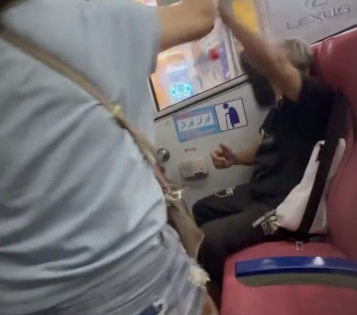 網友在threads分享影片指出,看到有人在公車上打架。影片中阿嬤拿拖鞋攻擊優先席上的阿伯,阿伯則出腳反擊,最後阿嬤下車離開。